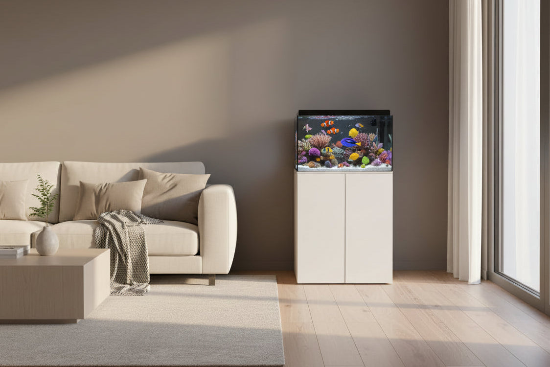 Low-iron glass and rear filtration design gives you a sleek, modern reef-ready system.